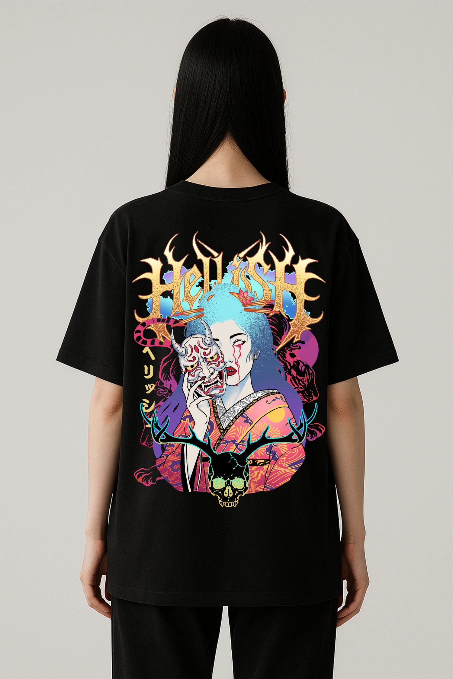 The Geisha tee is an ode to balance — soft beauty with a razor edge. The design merges Japan’s timeless artistry with raw street energy. Her calm mask hides defiance; her eyes tell a story of control.